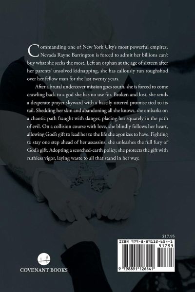 Commanding one of New York City's most powerful empires, Nevada Rayne Barrington is forced to admit her billions can't buy what she seeks the most. Left an orphan at the age of sixteen after her parents' unsolved kidnapping, she has callously run roughshod over her fellow man for the last twenty years. After a brutal undercover mission goes south, she is forced to come crawling back to a god she has no use for. Broken and lost, she sends a desperate prayer skyward with a hastily uttered promise tied to its tail. Shedding her skin and abandoning all she knows, she embarks on a chaotic path fraught with danger, placing her squarely in the path of evil. On a collision course with love, she blindly follows her heart, allowing God's gift to lead her to the life she agonizes to have. Fighting to stay one step ahead of her assassins, she unleashes the full fury of God's gift. Adopting a scorched-earth policy, she protects the gift with ruthless vigor, laying waste to all that stand in her way.