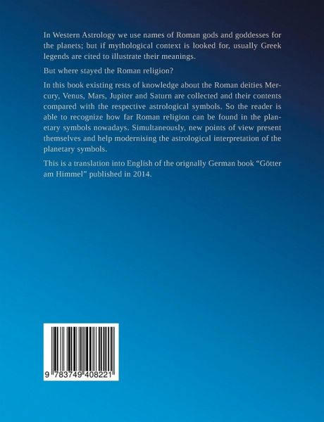 In western astrology we use of course Roman names for the planetary symbols; but when you look on the mythological explanations, you usually get Greek mythology to explain them. Doesn't count: NOMEN EST OMEN ? Searching the mythological rests of the original deities Mercury, Venus, Mars, Jupiter and Saturnus it was necessesary to dive deeply into the history of theology because the well-known literates like Ovid, Virgil and Lucretius preferred to retell Greek myths instead of preserving their own roots. In the last centuries (until about 1900) these authors werde taken as sources for theological research and there was no discrimination between literature/poetry and original italic tradition. Perspective and moral view of the 19th century added more misinterpretations and made the knowledge of Roman religion almost vanish. Existing rests are collected in this book and compared with the actual astrological symbols. So the reader can recognize how much of Roman ideas can be found in the planetary symbols nowadays. Simultaneously new points of view are opened for the interpretation of Mercury, Venus, Mars, Jupiter and Saturn.