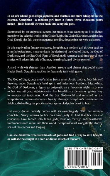 In an era where gods reign supreme and mortals are mere whispers in the cosmos, Seraphina-a modern girl from a future three thousand years hence-finds herself thrown back into a mythic past. Summoned by an enigmatic system, her mission is as daunting as it is divine: transform the celestial trinity of the God of Light, the God of Darkness, and the Sea God. Should she fail, the consequences are dire, threatening her very existence. In this captivating fantasy romance, Seraphina, a modern girl thrown back to a mythological past, must navigate the desires of the God of Light, the God of Darkness, and the Sea God. Fans of Greek gods romance and time-travel love stories will adore this tale of humor, heartbreak, and divine passion. Armed with wit sharper than Apollo's arrows and charm that could make Hades blush, Seraphina tackles her heavenly task with gusto. The God of Light, once aloof and as frosty as an Arctic tundra, finds himself thawing under Seraphina's bold spirit and infectious freedom. Meanwhile, the God of Darkness, a figure as enigmatic as a moonless night, is drawn to her warmth and righteousness, his bloodthirsty demeanor giving way to unexpected tenderness. And the Sea God-wild and untamed as the tempestuous ocean-discovers loyalty through Seraphina's insistence on fidelity, disbanding his piscine entourage to pledge his heart to her. But every divine comedy comes with its own tragedy. With her mission complete, Nancy returns to her own time, only to find that her celestial conquests have turned into fallen gods, bent on revenge and heartbreak. Summoned once more into their world, Seraphina must navigate the stormy seas of their scorn and longing. Can she mend the fractured hearts of gods and find a way to save herself, or will she be caught in a web of divine mischief forever?