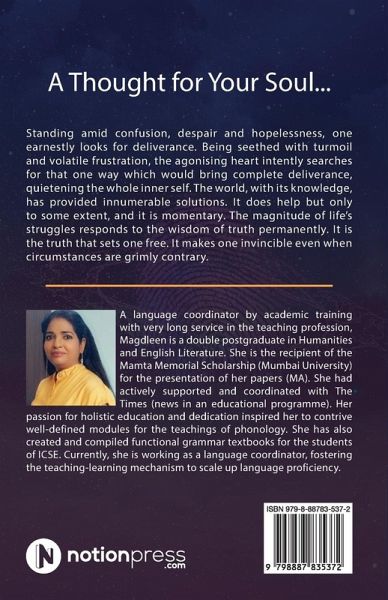 Standing in the midst of confusion, despair and hopelessness, one earnestly looks for deliverance. The world with its knowledge has provided innumerable solutions. It does help but to some extent. The magnitude of life struggles responds to the wisdom of truth permanently. It is the truth that sets one free. It makes one invincible even when circumstances are contrary.