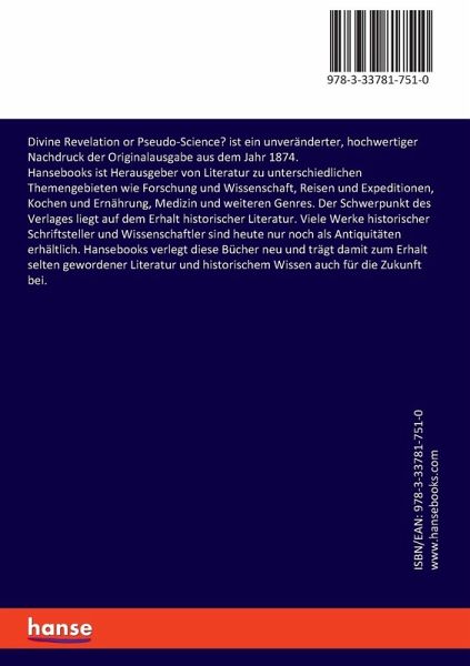 Divine Revelation or Pseudo-Science? ist ein unveränderter, hochwertiger Nachdruck der Originalausgabe aus dem Jahr 1874.