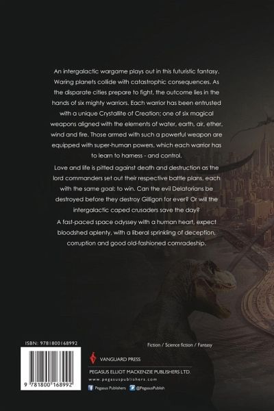 An intergalactic wargame plays out in this futuristic fantasy. Waring planets collide with catastrophic consequences. As the disparate cities prepare to fight, the outcome lies in the hands of six mighty warriors. Each warrior has been entrusted with a unique Crystallite of Creation; one of six magical weapons aligned with the elements of water, earth, air, ether, wind and fire. Those armed with such a powerful weapon are equipped with super-human powers, which each warrior has to learn to harness - and control. Love and life is pitted against death and destruction as the lord commanders set out their respective battle plans, each with the same goal: to win. Can the evil Delatorians be destroyed before they destroy Gilligon for ever? Or will the intergalactic caped crusaders save the day? A fast-paced space odyssey with a human heart, expect bloodshed aplenty, with a liberal sprinkling of deception, corruption and good old-fashioned comradeship.