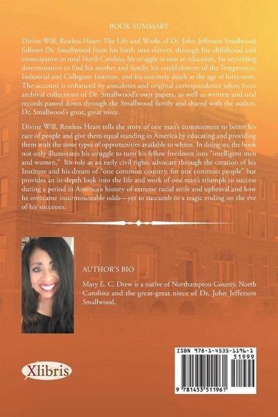 Mary E.C. Drew is a native of Northampton County, North Carolina, and the great, great niece of Dr. John Jefferson Smallwood. She is also the author of Divine Will, Restless Heart: The Life and Works of Dr. John Jefferson Smallwood.