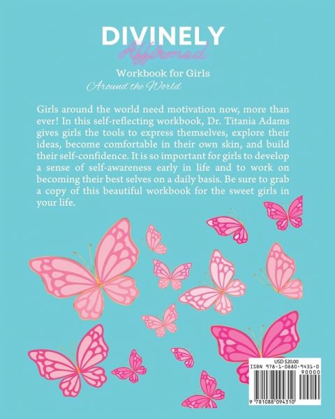 Girls around the world need motivation now, more than ever! In this self-reflecting book, Dr. Titania Adams gives girls the tools to express themselves, explore their ideas, become comfortable in their own skin, and build their self-confidence. It is so important for girls to develop a sense of self-awareness early in life and to work on becoming their best selves on a daily basis. Be sure to grab your copy of this beautiful workbook for the sweet girls in your life.