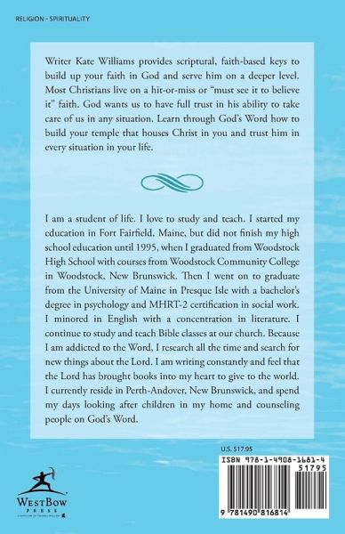 Writer Kate Williams provides scriptural, faith-based keys to build up your faith in God and serve him on a deeper level. Most Christians live on a hit-or-miss or "must see it to believe it" faith. God wants us to have full trust in his ability to take care of us in any situation. Learn through God's Word how to build your temple that houses Christ in you and trust him in every situation in your life.