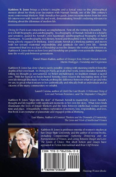 Kathleen B. Jones brings a scholar's insights and a lyrical voice to this philosophical memoir about her thirty-year fascination with Hannah Arendt, one of the 20th century's most controversial thinkers. With Arendt as her guide, Jones recounts stories from her own life interwoven with Arendt's life and work, demonstrating Arendt's enduring relevance to thinking about the dilemmas of modern life. Editorial Reviews "An extraordinary accomplishment! First off, the writing is beautiful. Diving for Pearls is both biography and autobiography. As a biography of Hannah Arendt it is scholarly and sensitive, guided by Arendt's own hauntingly autobiographical biography of Rahel Varnhagen. As autobiography, it is literary, honest and thoughtful in the Arendtian sense of being actively engaged in thinking. Jones adopts Arendt as a thinking partner, and moves with her toward existential responsibility and gratitude for one's own life. Arendt commented that love is a kind of friendship across the distance the world puts between us. Kathleen B. Jones shows us how love and friendship are possible even across the distance in time the world puts between generations." Daniel Maier-Katkin, author of Stranger from Abroad: Hannah Arendt, Martin Heidegger, Friendship and Forgiveness "Kathleen B. Jones has done what is rarely possible: writing with stunning intellect from the depths of her own heart. In Diving for Pearls, as in all of her work, Jones emulates Arendt by letting no thought go unexamined, no belief unchallenged, no tradition remain a sacred cow. With her typical no-holds-barred honesty, Jones weaves the fascinating story of her own life through this study of Arendt, probing the difference between what we are and who we are, to get at what it means to live authentically and ethically both as individuals and as citizens of the many communities we inhabit." Laurel Corona, author of Until Our Last Breath: A Holocaust Story of Love and Partisan Resistance, and The Mapmaker's Daughter. "Kathleen B. Jones "slips into the skin" of Hannah Arendt to masterfully weave Arendt's thought and life together with significant moments in her own life story. What Jones finds illuminates the lives of female thinkers and the links between intellectual women across time and place. A beautifully written exploration of memory, loss, responsibility, and love, this book is an exemplar of passionate and engaged political thinking." Lori Marso, author of Feminist Thinkers and the Demands of Femininity: The Lives and Work of Intellectual Women.