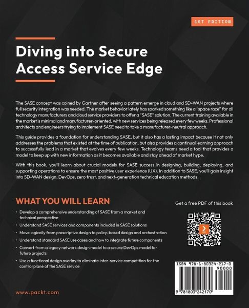 Implement Secure Access Service Edge (SASE) for secure network and application communications, exploring SASE services including SD-WAN, ZTF, and more with expert Jeremiah Ginn who helps CxO leaders achieve SASE success Key Features:Merge networking and security services into a single architecture to simplify network infrastructure Explore how zero trust network access (ZTNA) restricts access to provide native application segmentation Focus on a native, multitenant cloud architecture that scales dynamically with demand Book Description: The SASE concept was coined by Gartner after seeing a pattern emerge in cloud and SD-WAN projects where full security integration was needed. The market behavior lately has sparked something like a "space race" for all technology manufacturers and cloud service providers to offer a "SASE" solution. The current training available in the market is minimal and manufacturer-oriented, with new services being released every few weeks. Professional architects and engineers trying to implement SASE need to take a manufacturer-neutral approach. This guide provides a foundation for understanding SASE, but it also has a lasting impact because it not only addresses the problems that existed at the time of publication, but also provides a continual learning approach to successfully lead in a market that evolves every few weeks. Technology teams need a tool that provides a model to keep up with new information as it becomes available and stay ahead of market hype. With this book, you'll learn about crucial models for SASE success in designing, building, deploying, and supporting operations to ensure the most positive user experience (UX). In addition to SASE, you'll gain insight into SD-WAN design, DevOps, zero trust, and next-generation technical education methods. What You Will Learn:Develop a comprehensive understanding of SASE from a market and technical perspective Understand SASE services and components included in SASE solutions Move logically from prescriptive design to policy-based design and orchestration Understand standard SASE use cases and how to integrate future components Convert from a legacy network design model to a secure DevOps model for future projects Use a functional design overlay to eliminate inter-service competition for the control plane of the SASE service Who this book is for: This book is for technology and security leaders and specifically for any CTO, CSO, CISO, or CIO looking for an executive approach to SASE for their organization. Anyone implementing SD-WAN, SASE, and SASE services for cloud, network, and security infrastructure will also find this book helpful.