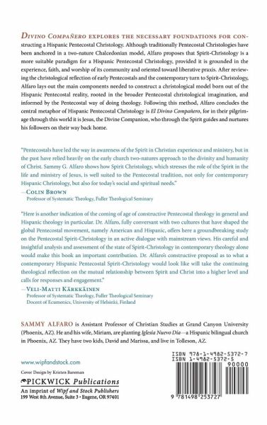 Divino Companero explores the necessary foundations for constructing a Hispanic Pentecostal Christology. Although traditionally Pentecostal Christologies have been anchored in a two-nature Chalcedonian model, Alfaro proposes that Spirit-Christology is a more suitable paradigm for a Hispanic Pentecostal Christology, provided it is grounded in the experience, faith, and worship of its community and oriented toward liberative praxis. After reviewing the christological reflection of early Pentecostals and the contemporary turn to Spirit-Christology, Alfaro lays out the main components needed to construct a christological model born out of the Hispanic Pentecostal reality, rooted in the broader Pentecostal christological imagination, and informed by the Pentecostal way of doing theology. Following this method, Alfaro concludes the central metaphor of Hispanic Pentecostal Christology is El Divino Companero, for in their pilgrimage through this world it is Jesus, the Divine Companion, who through the Spirit guides and nurtures his followers on their way back home.