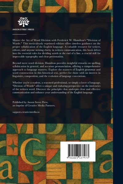 Master the Art of Word Division with Frederick W. Hamilton's "Division of Words." This meticulously reprinted edition offers timeless guidance on the proper syllabication of the English language. A valuable resource for writers, editors, and anyone seeking clarity in written communication, this book delves into the essential rules for dividing words at the end of a line, a crucial skill for impeccable typography and clear presentation. Beyond mere word division, Hamilton provides insightful remarks on spelling, syllabication in general, and accurate pronunciation, offering a comprehensive approach to language mastery. Explore the nuances of English grammar and word construction in this historical text, perfect for those with an interest in linguistics, composition, and the evolution of language conventions. Whether you're a student, a seasoned professional, or simply a lover of language, "Division of Words" offers a unique and enduring perspective on the intricacies of the written word. Discover the principles that underpin clear and effective communication and enhance your understanding of the English language. This work has been selected by scholars as being culturally important, and is part of the knowledge base of civilization as we know it. This work is in the public domain in the United States of America, and possibly other nations. Within the United States, you may freely copy and distribute this work, as no entity (individual or corporate) has a copyright on the body of the work. Scholars believe, and we concur, that this work is important enough to be preserved, reproduced, and made generally available to the public. We appreciate your support of the preservation process, and thank you for being an important part of keeping this knowledge alive and relevant.