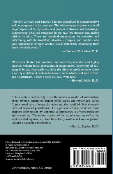 The Divorce and Divorce Therapy Handbook presents the most important findings on divorce, as well as the rich variety of therapeutic approaches that have been developed. Written by practitioners for practitioners, this is a comprehensive handbook for all mental health professionals, therapists, and counselors who have to deal with the multitude of problems associated with divorce and remarriage.