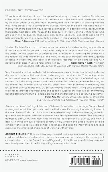 Divorce and Loss: Helping Adults and Children Mourn When a Marriage Comes Apart is designed to help therapists understand the many losses in divorce and the mourning process that is necessary for each family member in order to move on. Joshua Ehrlich describes how therapists can function as facilitators of mourning through therapy with children, adolescents and adults, and also provides specific, detailed interventions in working with parents, so that they can help their children traverse a constructive mourning process. Detailed clinical material is provided throughout.