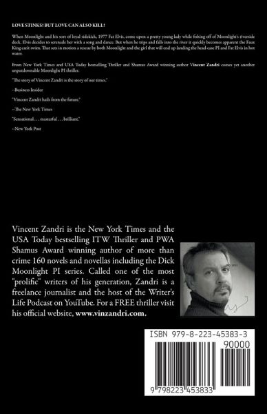 LOVE STINKS! BUT LOVE CAN ALSO KILL! When Moonlight and his sort of loyal sidekick, 1977 Fat Elvis, come upon a pretty young lady while fishing off of Moonlight's riverside deck, Elvis decides to serenade her with a song and dance. But when he trips and falls into the river it quickly becomes apparent the Faux King can't swim. That sets in motion a rescue by both Moonlight and the girl that will end up landing the head-case PI and Fat Elvis in hot water. From New York Times and USA Today bestselling Thriller and Shamus Award winning author Vincent Zandri comes yet another unputdownable Moonlight PI thriller. "The story of Vincent Zandri is the story of our times." --Business Insider "Vincent Zandri hails from the future." --The New York Times "Sensational . . . masterful . . . brilliant." --New York Post "Gritty, fast-paced, lyrical and haunting." --Harlan Coben, New York Times bestselling author of Six Years