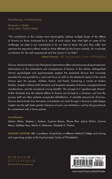 A valuable resource for clinicians, Divorce: Emotional Impact and Therapeutic Interventions demonstrates how therapists and patients can work through a divorce to yield deeper insights into the self, greater tolerance of one’s own limitations, and lay the groundwork for contentment with a future partner.