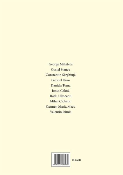Une dizaine de poètes roumains vous sont présentés dans cette anthologie traduite du roumain, classés, non pas dans l'ordre alphabétique, mais de manière aléatoire pour un panorama éclectique de la poésie roumaine de nos jours : George MIHALCEA, Costel STANCU, Constantin SARGHIUTA, Gabriel DINU, Daniela TOMA, Ionut CALOTA, Radu ULMEANU, Mihai CIOBANU, Carmen Maria MECU, Valentin IRIMIA.J'ai préféré laisser parler la poésie elle-même.Lisez et prenez du plaisir à cette découverte, sans plus attendre !(Gabrielle DANOUX)