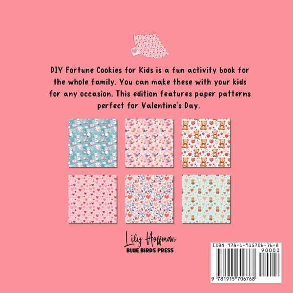 DIY Fortune Cookies for Kids is a fun activity book for the whole family. You can make these with your kids for any occasion. This edition features paper patterns perfect for Valentine's Day. There are simple pre-written loving and encouraging messages, along with templates for custom messages, making it suitable for older kids and adults as well. Some features include: 9 exclusive designs suitable for the Valentine's Day, a birthday party or any other happy occasion 36 fortune cookie patterns 36 pre-written messages suitable for younger kids 36 templates for custom messages Can use the included patterns or make your own Tip: use some designs for younger kids and others for adults with custom-written messages to make it a fun activity for the entire family. Buy now as a gift or enjoy it with your loved ones.