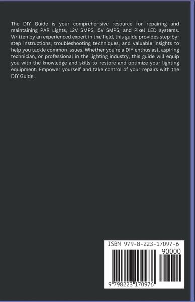The DIY Guide is your comprehensive resource for repairing and maintaining PAR Lights, 12V SMPS, 5V SMPS, and Pixel LED systems. Written by an experienced expert in the field, this guide provides step-by-step instructions, troubleshooting techniques, and valuable insights to help you tackle common issues. Whether you're a DIY enthusiast, aspiring technician, or professional in the lighting industry, this guide will equip you with the knowledge and skills to restore and optimize your lighting equipment. Empower yourself and take control of your repairs with the DIY Guide.
