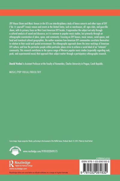 DIY House Shows and Music Venues in the US is an interdisciplinary study of house concerts and other types of DIY ("do- it- yourself") music venues and events in the United States, such as warehouses, all- ages clubs, and guerrilla shows, with its primary focus on West Coast American DIY locales. It approaches the subject not only through a cultural analysis of sound and discourse, as it is common in popular music studies, but primarily through an ethnographic examination of place, space, and community. Focusing on DIY houses, music venues, social spaces, and local and translocal cultural geographies, the author examines how American DIY communities constitute themselves in relation to their social and spatial environment. The ethnographic approach shows the inner workings of American DIY culture, and how the particular people within particular places strive to achieve a social ideal of an "intimate" community. This research contributes to the sparse range of Western popular music studies (especially regarding rock, punk, and experimental music) that approach their subject matter through a participatory ethnographic research.