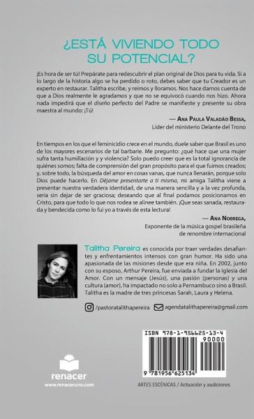Déjame presentarte a ti misma es fruto de una larga experiencia de la pastora Talitha Pereira al lidiar con los problemas más comunes en nosotras, mujeres, en lo que se refiere a nuestra identidad, a nuestros miedos, anhelos y frustraciones. La autora busca desenmascarar las mentiras arraigadas en el consciente e inconsciente de la mujer, que le impide vivir una vida productiva y significativa, ya sea de la perspectiva personal o comunitaria. En Déjame presentarte a ti misma, la lectora va a reconocer su fuerza y capacidad, sin dejar de ser desafiada a cambiar de enfoque con relación a sí misma y a su mundo más íntimo, rumbo a un crecimiento personal, familiar, profesional y social. Como resultado de innumerables conferencias, charlas y estudios, además de formación académica, la autora disfruta de un reconocimiento comprobado por un público bastante amplio, que incluye todas las edades. Querida lectora, ¡empieza hoy a conocer tu potencial!