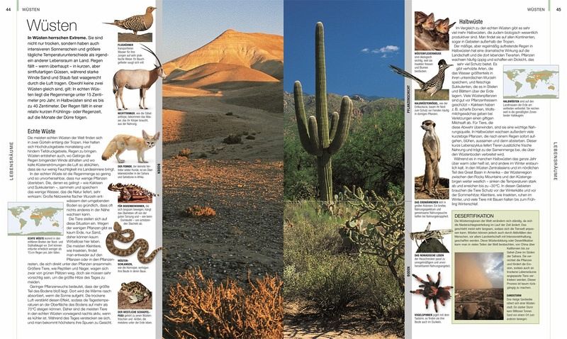 Warum sind Zebras gestreift? Wie kommt der Sonnenbär zu seinem Namen? Alle, die ein fundiertes, anschauliches Nachschlagewerk zu Fragen wie diesen und vielen anderen suchen, werden von diesem beeindruckenden Tierbuch begeistert sein. Diese erstklassige Foto-Enzyklopädie des Tierreichs wurde auf Basis neuester wissenschaftlicher Erkenntnisse aktualisiert und mit neuen Arten und Bildern ergänzt. Über 70 international anerkannte Autor_innen und Berater_innen bürgen für fundierte Informationen, wobei die atemberaubenden Tierfotografien von wildlebenden Säugetieren, Vögeln, Reptilien, Amphibien, Fischen, Insekten und Wirbellosen von den besten Tierfotografen der Welt stammen. Ein einführendes Kapitel stellt anschaulich die unterschiedlichen Lebensräume dieser Erde vor.