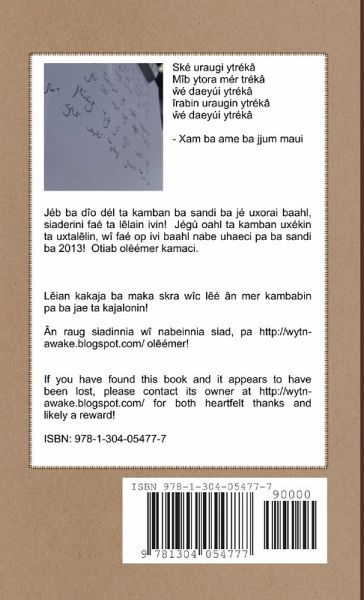 The second edition of the Sandic-language anthology of translated and original works! Read fun stories like King Arthur's Courage, the King of the Crows, the story of Grandfather and the Dragon, and more- all in Sandic! This is the sister volume to the third edition of Kaponî ba Sandi and intended to be used with it. Not intended for actual sale or profit (so please don't purchase this), this book can be freely downloaded at the author's blog site.