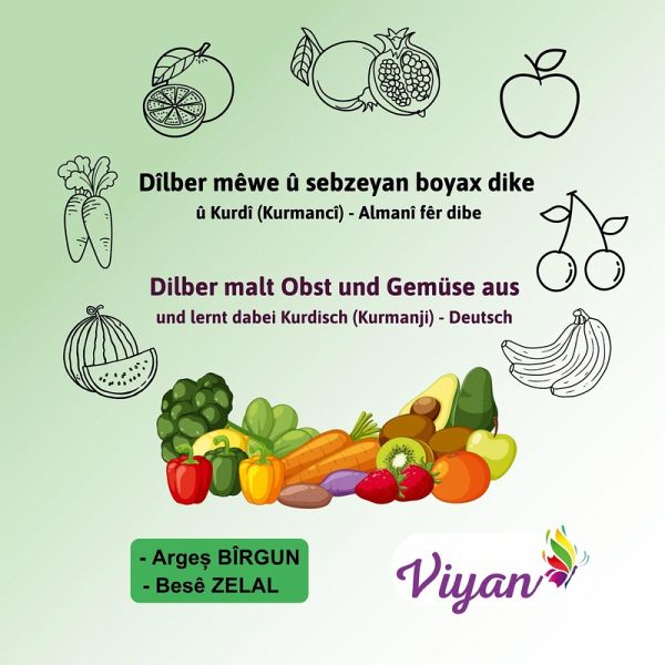 Diese Arbeit wurde für Kinder vorbereitet, damit sie sowohl die Bilder von Obst und Gemüse ausmalen als auch deren Namen auf Kurdisch (Kurmanji) - Deutsch lernen können. Ev xebat ji bo ku zarok hem wêneyên mêwe û sebzeyan boyax bikin hem jî navên wan bi Kurdî (Kurmancî) - Almanî fêr bibin hatîye amadekirin.