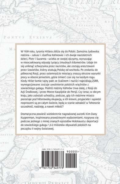 W tej porywającej historii żydowskiej rodziny rozdartej przez wojnę, Józefina wraz z nastoletnią córką i synem zostają zeslani do obozu pracy przymusowej w Związku Radzieckim, a następnie, w apogeum II wojny światowej, znajdują nieoczekiwane schronienie w Iranie. W 1939 roku, tyrania Hitlera zbliża się do zachodniej Polski. Zamożna żydowska rodzina - Juliusz i Józefina Kohnowie i ich dwoje nastoletnich dzieci, Piotr i Suzanna - ucieka ze swojej ojczyzny, wyruszając w nieoczekiwaną odyseję tysięcy żmudnych kilometrów. Udaje im się uniknąc bycia schwytanym przez nazistów, ale zostają aresztowani przez Sowietów, którzy atakują Polskę od wschodu. Po zeslaniu do pólnocnej Rosji, przez osiemnaście miesięcy znoszą okrutne warunki pracy w obozie jenieckim, gdzie śmierc czai się na każdym rogu. Kiedy Hitler lamie tajny pakt ze Stalinem i naziści najeżdżają ZSRR, wynegocjowane zostaje uwolnienie polskich więźniów z sowieckiego gulagu. Podróż rodziny Kohnów trwa dalej, z Rosji do Azji Środkowej, i przez Morze Kaspijskie do Persji. Czy teraz, w obcym kraju, jako zubożali uchodźcy, podczas, gdy ich rodzinne miasto pozostaje pod hilterowską okupacją, a ich krewni, przyjaciele i sąsiedzi rozproszeni są po calym świecie, będą w stanie odnaleźc w Teheranie szczodrośc, nadzieję, a nawet milośc? Dramatyczna powieśc wielokrotnie nagradzanej autorki Kim Dany Kupperman, inspirowana prawdziwymi wydarzeniami, rozgrywa się podczas jednego z mniej znanych epizodów Holokaustu: deportacji do sowieckiego gulagu 1,5-2 milionów obywateli polskich na początku II wojny światowej.