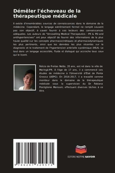 Il existe d'innombrables sources de connaissances dans le domaine de la médecine. Cependant, le langage extrêmement formel ne remplit souvent pas son objectif, à savoir fournir à ses lecteurs des connaissances adéquates. Les auteurs de "Unravelling Medical Therapeutics : PK & PD and antihypertensives" ont pour objectif de fournir des informations de la plus haute qualité sur les concepts pharmacocinétiques et pharmacodynamiques les plus pertinents, ainsi que les données les plus récentes sur le diagnostic et le traitement de l'hypertension artérielle systémique (HSA). Le tout dans un langage accessible, fluide et dialogué qui accroche tous ceux qui le lisent.