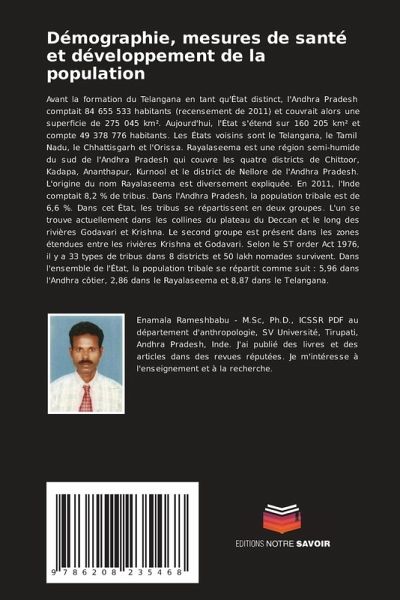 Avant la formation du Telangana en tant qu'État distinct, l'Andhra Pradesh comptait 84 655 533 habitants (recensement de 2011) et couvrait alors une superficie de 275 045 km². Aujourd'hui, l'État s'étend sur 160 205 km² et compte 49 378 776 habitants. Les États voisins sont le Telangana, le Tamil Nadu, le Chhattisgarh et l'Orissa. Rayalaseema est une région semi-humide du sud de l'Andhra Pradesh qui couvre les quatre districts de Chittoor, Kadapa, Ananthapur, Kurnool et le district de Nellore de l'Andhra Pradesh. L'origine du nom Rayalaseema est diversement expliquée. En 2011, l'Inde comptait 8,2 % de tribus. Dans l'Andhra Pradesh, la population tribale est de 6,6 %. Dans cet État, les tribus se répartissent en deux groupes. L'un se trouve actuellement dans les collines du plateau du Deccan et le long des rivières Godavari et Krishna. Le second groupe est présent dans les zones étendues entre les rivières Krishna et Godavari. Selon le ST order Act 1976, il y a 33 types de tribus dans 8 districts et 50 lakh nomades survivent. Dans l'ensemble de l'État, la population tribale se répartit comme suit : 5,96 dans l'Andhra côtier, 2,86 dans le Rayalaseema et 8,87 dans le Telangana.