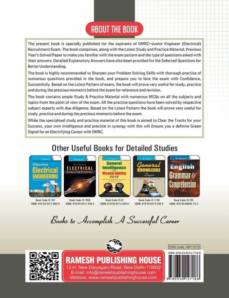 This comprehensive book is specially developed for the candidates of DMRC: Junior Engineer electrical recruitment Exam. This book includes previous Papers & Study material for the purpose of practice of questions based on the latest pattern of the examination. Detailed Explanatory Answers have also been provided for the selected questions for Better understanding of the Candidates. The book is also very useful for Bangalore Metro Rail Corporation (bmrc); Jaipur Metro Rail Corporation (jmrc); Kolkata Metro Rail Corporation (kmrc); Mumbai Metro Rail Corporation (mmrc); Chennai Metro Rail limited (cmrl); vijaywada Metro; Lucknow Metro etc. This comprehensive book is specially developed for the candidates of DMRC: Junior Engineer electrical recruitment Exam. This book includes previous Papers & Study material for the purpose of practice of questions based on the latest pattern of the examination. Detailed Explanatory Answers have also been provided for the selected questions for Better understanding of the Candidates. The book is also very useful for Bangalore Metro Rail Corporation (bmrc); Jaipur Metro Rail Corporation (jmrc); Kolkata Metro Rail Corporation (kmrc); Mumbai Metro Rail Corporation (mmrc); Chennai Metro Rail limited (cmrl); vijaywada Metro; Lucknow Metro etc.