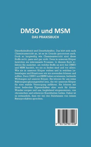 Dimethylsulfoxid und Dimethylsulfon. Das hört sich nach Chemieunterricht an, ist es im Grunde genommen auch. Doch so langweilig wie Chemieunterricht sind diese Stoffe nicht, ganz und gar nicht. Denn in unserem Körper bewirken sie interessante Prozesse. In diesem Buch erfahren Sie zunächst, um welche Stoffe es sich bei DMSO und MSM handelt, wo sie zu finden sind und vor allem: Wie sie in unserem Körper wirken und in welchen Lebenslagen und Situationen wir sie anwenden können und sollten. Denn DMSO und MSM haben erwiesene, heilende Wirkungen auf unseren Körper. Sie können für uns reine Nahrungsergänzungsmittel sein, die wir unserem Körper für eine stabile Versorgung zuführen. Sie können mit ihren heilenden Eigenschaften aber auch für kleine Wunder sorgen und uns, begleitend eingenommen, von chronischen und schweren Krankheiten heilen. Dabei ist es erstaunlich, dass wir bei den Substanzen von reinen Naturprodukten sprechen.