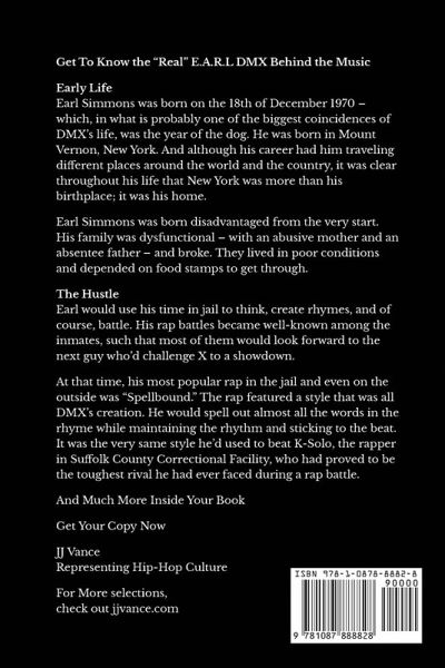 ¿¿¿Get to know E.A.R.L DMX - Behind the Curtains¿¿¿Here's Just a Taste What You're About to Read in This Concise E.A.R.L DMX Biography: Things most people might not know about E.A.R.L. DMX DMX: Introduction Earl Simmons, more popularly known by his stage name DMX, short for "Dark Man X", was an American rapper, songwriter, and actor. His role in advancing rap music can't be challenged. DMX was known and loved for his raw, authentic music, which resonated with his audience, as well as his down-to-earth nature. He stayed true to his roots in the streets even after he had built a successful career and a comfortable life for himself. Early Life When DMX was born, he wasn't DMX. As all great stories begin, the great rap legend was nothing more than an innocent baby. His mother named him Earl Simmons. Earl Simmons was born on the 18th of December 1970 - which, in what is probably one of the biggest coincidences of DMX's life, was the year of the dog. He was born in Mount Vernon, New York. And although his career had him travelling different places around the world and the country, it was clear throughout his life that New York was more than his birthplace; it was home. Becoming DMX Hip-Hop was just coming onto the music scene at the time. The music was considered "ghetto," and so it wasn't played often by radio stations. R&B and Rock music were dominating the airwaves then. So, the kids in Earl's cottage would put on the radio and spit rhymes over other people's songs that they heard - even if it wasn't a hip-hop song. At the time, DMX wasn't DMX... he was just Earl. And Earl had never come up with a single rhyme his entire life. So while others were rhyming to the beats of songs on the radio and challenging themselves to see who could say the best rhymes, all Earl would do was stand to the side and enjoy the music. Click to Buy Now and Read Now! Available for Immediate read - Even at 3 AM! Note: This is an unofficial book to E.A.R.L DMX from a fan, for a fan to contribute to his legacy. It has not been has not been approved or endorsed by the DMX or his associates.