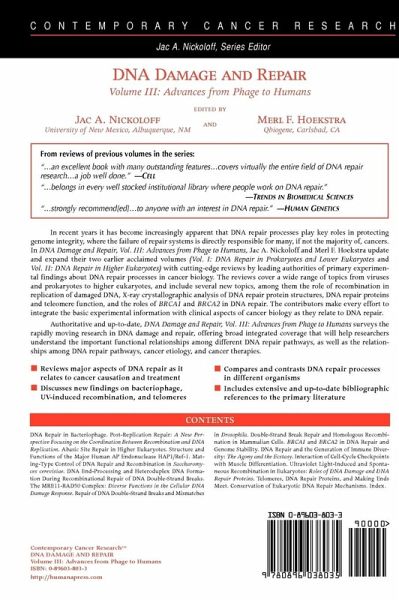 "Authoritative and up-to-date, DNA Damage and Repair, surveys the rapidly moving research in DNA damage and repair, offering broad integrated coverage that will help researchers understand the important functional relationships among different DNA repair pathways, as well as the relationships among DNA repair pathways, cancer etiology, and cancer therapies." - Anticancer Research