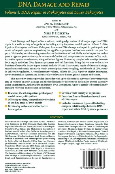 Award-winning researchers review of key aspects of DNA repair in a wide variety of organisms, including all-important model systems. The book focuses on DNA damage and repair in prokaryotic and model eukaryotic systems, emphasizing the significant progress that has been made in the past five years. Each chapter has undergone a rigorous peer-review cycle to ensure definitive and comprehensive treatment. Major topics include UV and X-Ray repair, repair of chemical damage, recombinational repair, mismatch repair, transcription-repair coupling, and the role of DNA repair in cell cycle regulation.