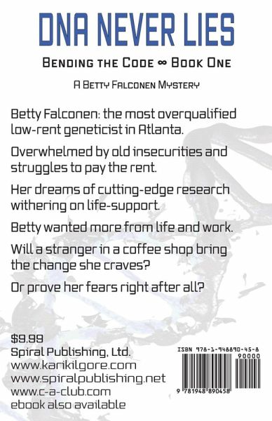 DNA Never Lies: Bending the Code - Book One Betty Falconen: the most overqualified low-rent geneticist in Atlanta. Overwhelmed by old insecurities and struggles to pay the rent. Her dreams of cutting-edge research withering on life-support. Betty wanted more from life and work. Will a stranger in a coffee shop bring the change she craves? Or prove her fears right after all? An excerpt from DNA Never Lies: An offer too good to refuse, but at what cost? One last surprise waited for Betty: an application to qualify as a contractor for the Baron County Police Department. Specifically, to…mehr