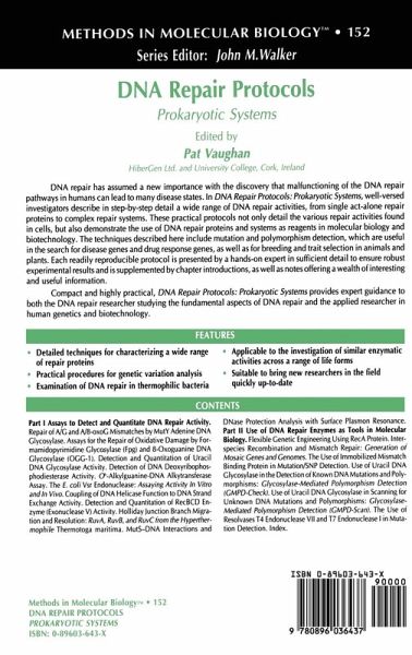 "...must for any science library supporting a molecular biology program." - E-Streams "An informative collection of techniques and protocols for characterizing and utilizing DNA repair activities and enzymes from some of the leading names in DNA repair field. This collection of protocols is ideal for both the novice in the field and to the experienced applied researcher." - Lavoisier Librairie