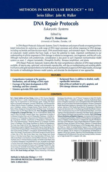 "...a comprehensive series of technique-oriented chapters focusing on eukaryotic DNA repair methodology. ...this text succeeds admirably...The scope of the text is fairly broad and encompasses not only in vitro biochemistry and enzymology, but also cell biology and genetics and even signal transduction....In vitro biochemical assays are well covered,...A particularly nice feature of the book is that the chapters have undergone uniform editing and formatting. All provide a nice overview of the topic, including a brief review of the pertinent literature, followed by step-by-step methods sections. The methods are clearly presented in annotated outline form with cross referencing and high level of detail. Each chapter has a particularly valuable section at the end, called "Notes" in which the authors present some of the nitty-gritty details and tricks of the trade needed to make the techniques work....Overall, this book should provide a valuable laboratory companion for researchers in the area of DNA repair. It serves to provide useful and readable introductions to various topics, along with techniques protocols sufficient for reproducibility....this text will have substantial appeal to the readers of Radiation Research."-Radiation Research