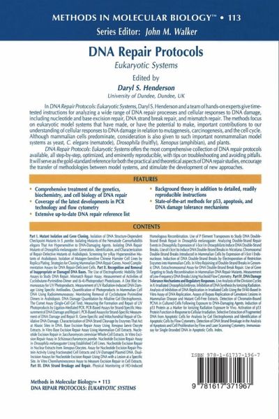 "...a comprehensive series of technique-oriented chapters focusing on eukaryotic DNA repair methodology. ...this text succeeds admirably...The scope of the text is fairly broad and encompasses not only in vitro biochemistry and enzymology, but also cell biology and genetics and even signal transduction....In vitro biochemical assays are well covered,...A particularly nice feature of the book is that the chapters have undergone uniform editing and formatting. All provide a nice overview of the topic, including a brief review of the pertinent literature, followed by step-by-step methods sections. The methods are clearly presented in annotated outline form with cross referencing and high level of detail. Each chapter has a particularly valuable section at the end, called "Notes" in which the authors present some of the nitty-gritty details and tricks of the trade needed to make the techniques work....Overall, this book should provide a valuable laboratory companion for researchers in the area of DNA repair. It serves to provide useful and readable introductions to various topics, along with techniques protocols sufficient for reproducibility....this text will have substantial appeal to the readers of Radiation Research."-Radiation Research