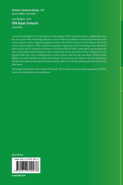 Current knowledge of the mechanisms that regulate DNA repair has grown significantly over the past years with technology advances such as RNA interference, advanced proteomics and microscopy as well as high throughput screens. The third edition of DNA Repair Protocols covers various aspects of the eukaryotic response to genomic insult including recent advanced protocols as well as standard techniques used in the field of DNA repair. Both mammalian and non-mammalian model organisms are covered in the book, and many of the techniques can be applied with only minor modifications to other systems than the one described. Written in the highly successful Methods in Molecular Biology? series format, the chapters include the kind of detailed description and implementation advice that is crucial for getting optimal results in the laboratory.