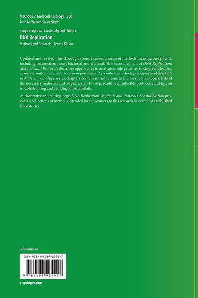 Updated and revised, this thorough volume covers a range of methods focusing on systems, including mammalian, yeast, bacterial and archaeal. This second edition of DNA Replication: Methods and Protocols describes approaches to analyze whole genomes to single molecules, as well as both in vivo and in vitro experiments. As a volume in the highly successful Methods in Molecular Biology series, chapters contain introductions to their respective topics, lists of the necessary materials and reagents, step-by-step, readily reproducible protocols and tips on troubleshooting and avoiding known…mehr