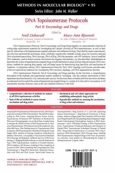 "An unprecedented collection of cutting-edge experimental protocols for investigating the catalytic activities of DNA topoisomerases, as well as their specific interactions with topoisomerase-targeted antitumor and antibacterial drugs." -Tumori