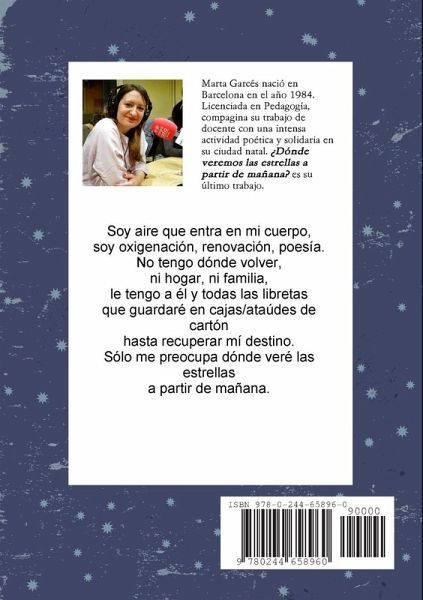 Soy aire que entra en mi cuerpo, soy oxigenación, renovación, poesía. No tengo dónde volver, ni hogar, ni familia, le tengo a él y todas las libretas que guardaré en cajas/ataúdes de cartón hasta recuperar mí destino. Sólo me preocupa dónde veré las estrellas a partir de mañana.