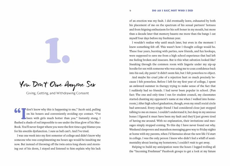 "Do As I Say, Not Who I Did is not subtle, delicate, or laced in metaphor. . . . It's compelling, funny, and unflinchingly educational while delivering a stream of unconditional compassion for the reader."-Daily Campus It's hard to overstate how much we put pressure on early sexual encounters-and how little real advice is out there. How do I deal when I keep running into my one-night stand? How can I tell if I'm too drunk to have sex? How do I say stop when I'm not really into it? Why do I keep getting all these UTIs? And most of all: Why is so much of sex ed focused on what could go wrong instead of what actually feels good? In this unflinchingly honest guide to hookups and relationships in the twenty-first century, Ali Drucker answers these questions and more-with "been there, done that" confessional advice, plus input from experts on sexuality and from students in college today. If you missed out on shame-free, affirmative sex education . . . if you're nervous about having sex . . . if you're just discovering what you want (and how to ask for it)-this book is for you.
