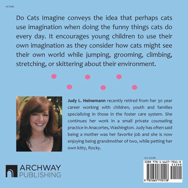 Do Cats Imagine conveys the idea that perhaps cats use imagination when doing the funny things cats do every day. It encourages young children to use their own imagination as they consider how cats might see their own world while jumping, grooming, climbing, stretching, or skittering about their environment.