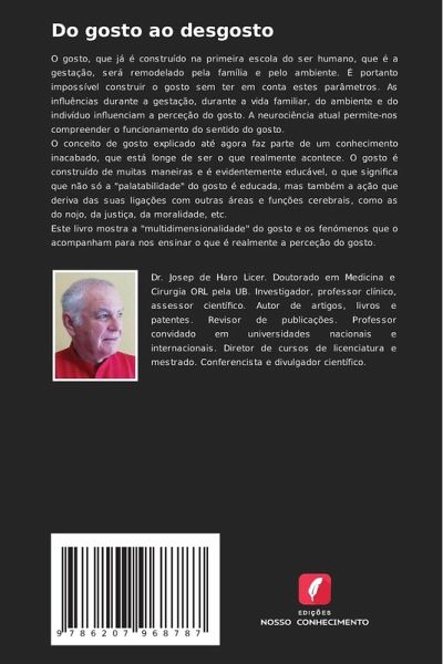 O gosto, que já é construído na primeira escola do ser humano, que é a gestação, será remodelado pela família e pelo ambiente. É portanto impossível construir o gosto sem ter em conta estes parâmetros. As influências durante a gestação, durante a vida familiar, do ambiente e do indivíduo influenciam a perceção do gosto. A neurociência atual permite-nos compreender o funcionamento do sentido do gosto.O conceito de gosto explicado até agora faz parte de um conhecimento inacabado, que está longe de ser o que realmente acontece. O gosto é construído de muitas maneiras e é evidentemente educável, o que significa que não só a "palatabilidade" do gosto é educada, mas também a ação que deriva das suas ligações com outras áreas e funções cerebrais, como as do nojo, da justiça, da moralidade, etc.Este livro mostra a "multidimensionalidade" do gosto e os fenómenos que o acompanham para nos ensinar o que é realmente a perceção do gosto.