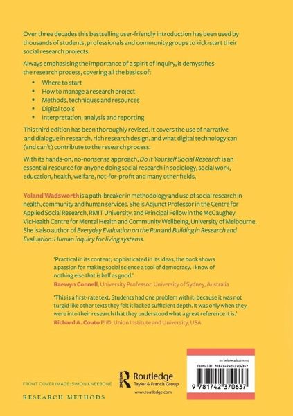 Yoland Wadsworth is a path-breaker in methodology and use of social research in health, community and human services. She is Adjunct Professor in the Centre for Applied Social Research, RMIT University, and Principal Fellow in the McCaughey VicHealth Centre for Mental Health and Community Wellbeing, University of Melbourne. She is also author of Everyday Evaluation on the Run and Building in Research and Evaluation: Human inquiry for living systems.