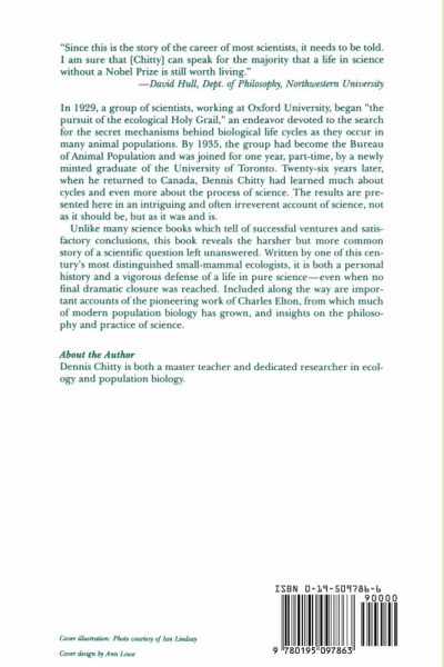 In 1929, a group of scientists, including the author, working at the Bureau of Animal Population, Oxford University, began "the pursuit of the ecological Holy Grail", a scientific endeavor devoted to the search for the secret mechanisms behind biological life cycles as they occur in many animal populations. The results are presented here, in an account of science, not as it should be, but as it really is. Unlike nearly all science books which tell of successful ventures and satisfactory conclusions, this book reveals the harsher story of a scientific question left unanswered. Written by one of this century's most distinguished small mammal ecologists, it is both a personal history of and an apology for a life in science spent on research for which no final dramatic closure was reached. Included along the way are important anecdotes and history about Charles Elton and his pioneering work, from which much of modern population has grown, and insights on the philosophy and practice of science. Whether readers have an interest in population cycles, life sciences, or the history and philosophy of science, they will walk away with the inspiring notion that a life in science without a Nobel Prize is still well worth living.