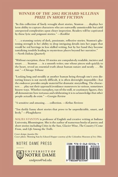 Do Not Forsake Me, Oh My Darling contains ten darkly funny short stories by Maura Stanton. Anything can happen in this swiftly narrated book, which provides glimpses of Gertrude Stein playing Ping-Pong with a G.I. in Paris during World War II, a famous contemporary writer giving a haircut in a bar in Eureka, California, and Katherine Mansfield struggling to write her final stories in Montana, Switzerland. The characters in Stanton's lively stories try to sort out their lives by telling stories or listening closely to the stories of other people. Two sisters interrogate each other about different versions of the party that changed their lives forever. A young woman entertains and shocks her friends in a café with a funny story about her first love affair. A landlady tries to reconstruct the life of a Sicilian immigrant whose ashes she finds in a trailer. In capturing with wit and sensitivity the struggles of its characters to make sense of the many strange and ordinary occurrences of everyday life, Do Not Forsake Me, Oh My Darling reminds us that we are all, in some sense, characters in many of life's different stories. Winner of the 2002 Richard Sullivan Prize in Short Fiction, this smart, tidy collection of 10 stories holds some pleasant surprises. "Ping-Pong," which appeared in the Chicago Tribune, reads as a straightforward memoir by the daughter of a GI who met Gertrude Stein in Paris. Stanton (Glacier Wine) is determined to fashion each story from a different angle and voice sometimes within the same story, as in "How to Converse in Italian," which finds two sisters relating their versions of the events culminating in a drunken episode that broke up their parents' marriage. Two other women take opposing views on the quality of the novel their dead sister is supposed to have written in "My Sister's Novel." Two tales recount the fate of an Italian immigrant named Dominica, who fled an abusive childhood in Sicily to start a new life in America. In "Squash Flowers," the narrator is a young woman interviewing an elderly neighbor of Dominica, whose ashes have been found unceremoniously dumped and abandoned in a garbage can. In "My Death," Dominica is one of the vociferous, terrifying Italian relatives of the boy narrator, Joey, who must decide whether it is worse to spend his time with them on their Maryland farm or be abused by his mean, redheaded orphan neighbor, Martha. Not all the stories match the energy of this one, but Stanton proves that she can tell a tale, develop it and introduce some prickly, dramatic elements all of which come together to gratifying effect.