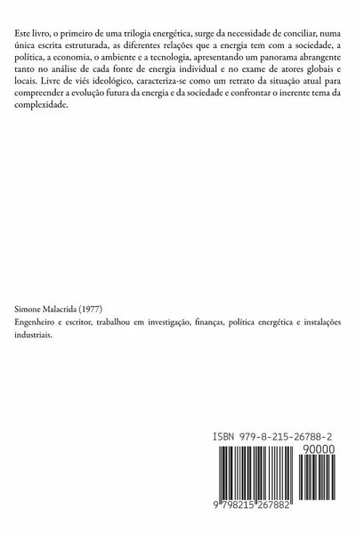 Este livro, o primeiro de uma trilogia energética, surge da necessidade de conciliar, numa única escrita estruturada, as diferentes relações que a energia tem com a sociedade, a política, a economia, o ambiente e a tecnologia, apresentando um panorama abrangente tanto no análise de cada fonte de energia individual e no exame de atores globais e locais. Livre de viés ideológico, caracteriza-se como um retrato da situação atual para compreender a evolução futura da energia e da sociedade e confrontar o inerente tema da complexidade.