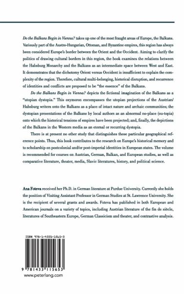 «Ana Foteva's 'Do the Balkans Begin in Vienna?' is an exemplary representation of the work necessary to understand in contemporary terms a region where nationalist-imperialist paradigms for cultural study simply do not hold. The text takes up several cultures and breathes life into their intersections, as they meet in the present, reawakening the joint legacies of three ancient empires (Habsburg, Ottoman, and Byzantine) out from behind the blackout curtain of the Soviet Union. She presents authors writing in German, Serbian, and Bosnian, each trying to understand what stories comprise the region's inheritance beyond nationalism. Foteva's deft juxtaposition of history, travelogue, and literature opens new visions of how cultures interact when they both share and are divided multiple. This volume is a must for anyone working in Austrian and Slavic literatures.» (Katherine Arens, University of Texas at Austin)