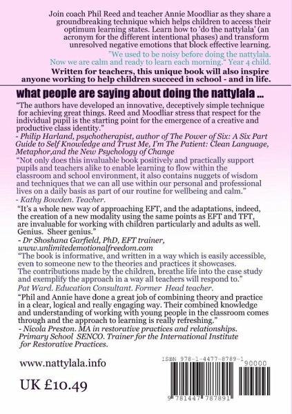 Join nlp/eft coach Phil Reed, and London junior school teacher Annie Moodliar as they share a ground-breaking technique, which helps children to access their optimum learning states. "We used to be noisy before doing the nattylala; now we are calm and ready to learn early each morning." Child in year 4. Written for teachers, this book will also inspire anyone working to help children succeed at school .. and in life.
